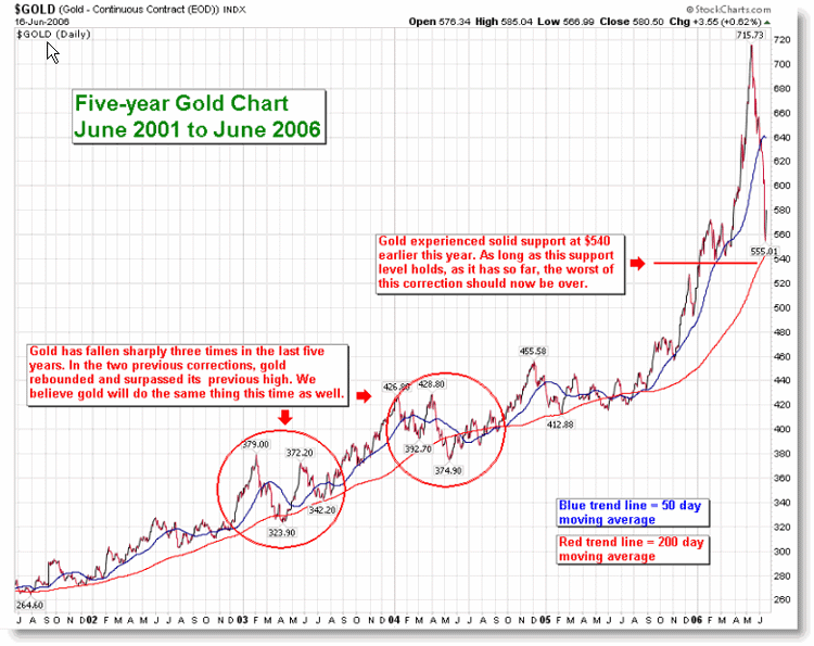 When gold breached $500 for the second time in 2006, there was no looking back. It did a bit of work around $550, and then went into lunar orbit.