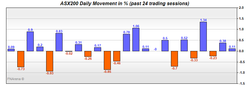 The ASX200 shot up 35 points from the open yesterday to pass the 7500 level once more, then became frightened and ran away. Late morning it was almost flat again. Perhaps emboldened by the S&P500 hitting a new high overnight, our index became the little engine that could, closing at 7503 – a new high.