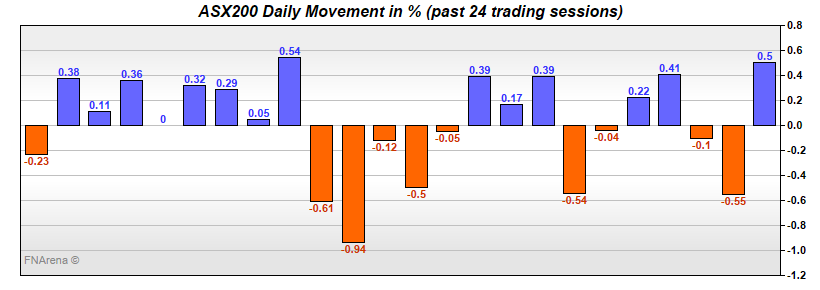 Among individual index stocks, Altium ((ALU)) won the day with a 4.3% gain, after brokers expressed their longer term belief in the company despite its big post-result drop.