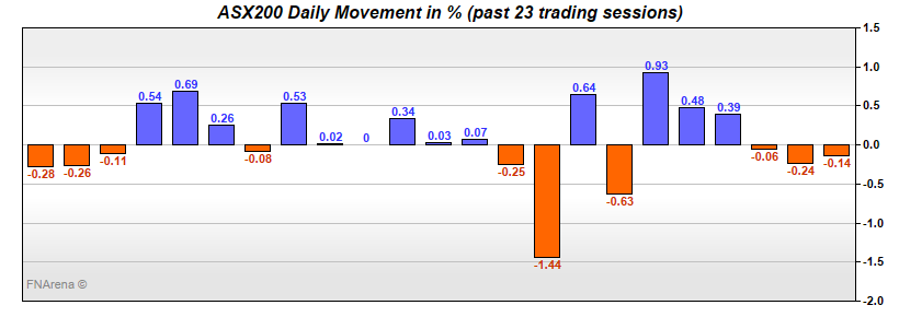 It was an upbeat start for the ASX200 yesterday but sentiment soon gave way to another soggy finish. Late morning the index was up 16 and then closed down -18.